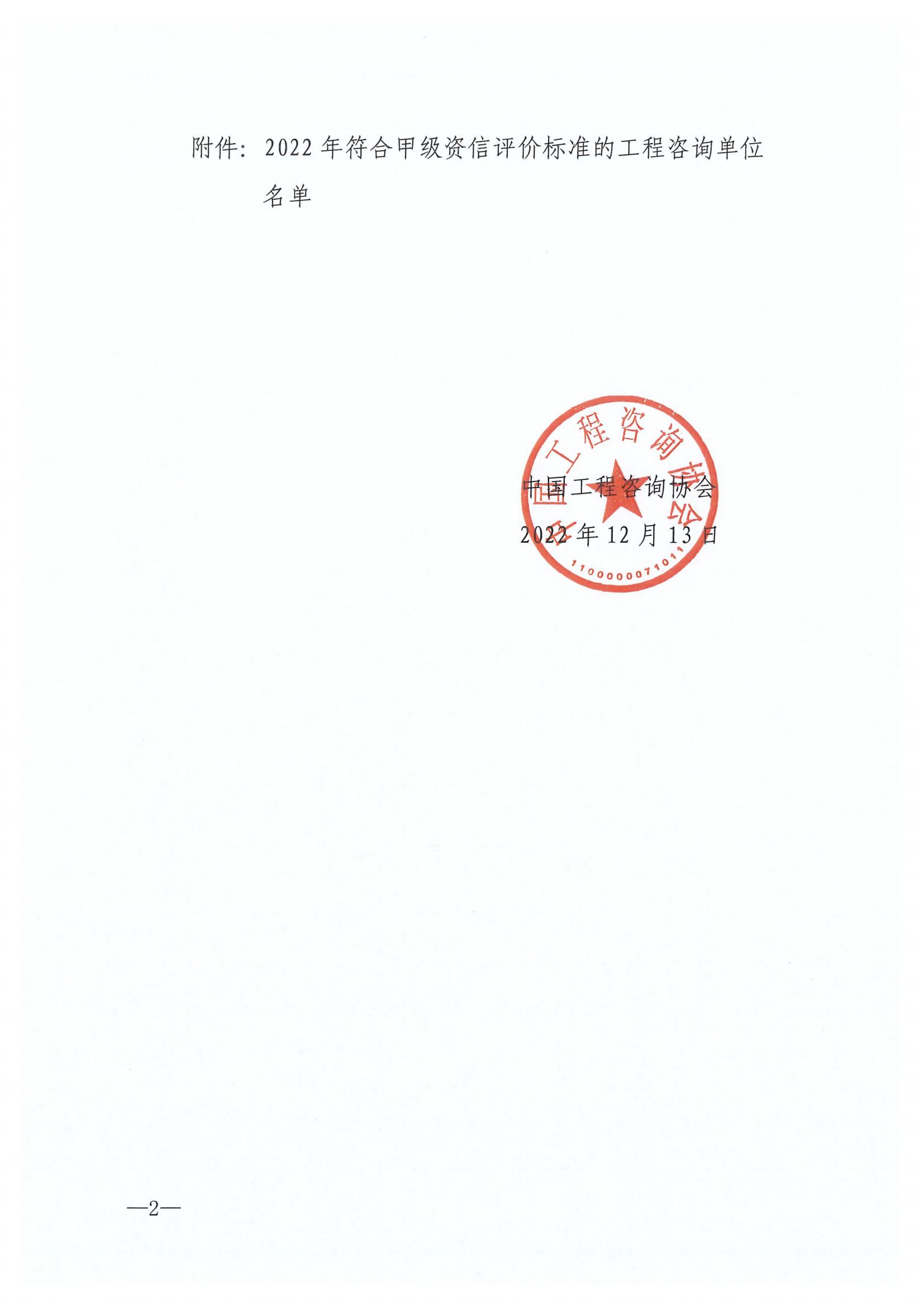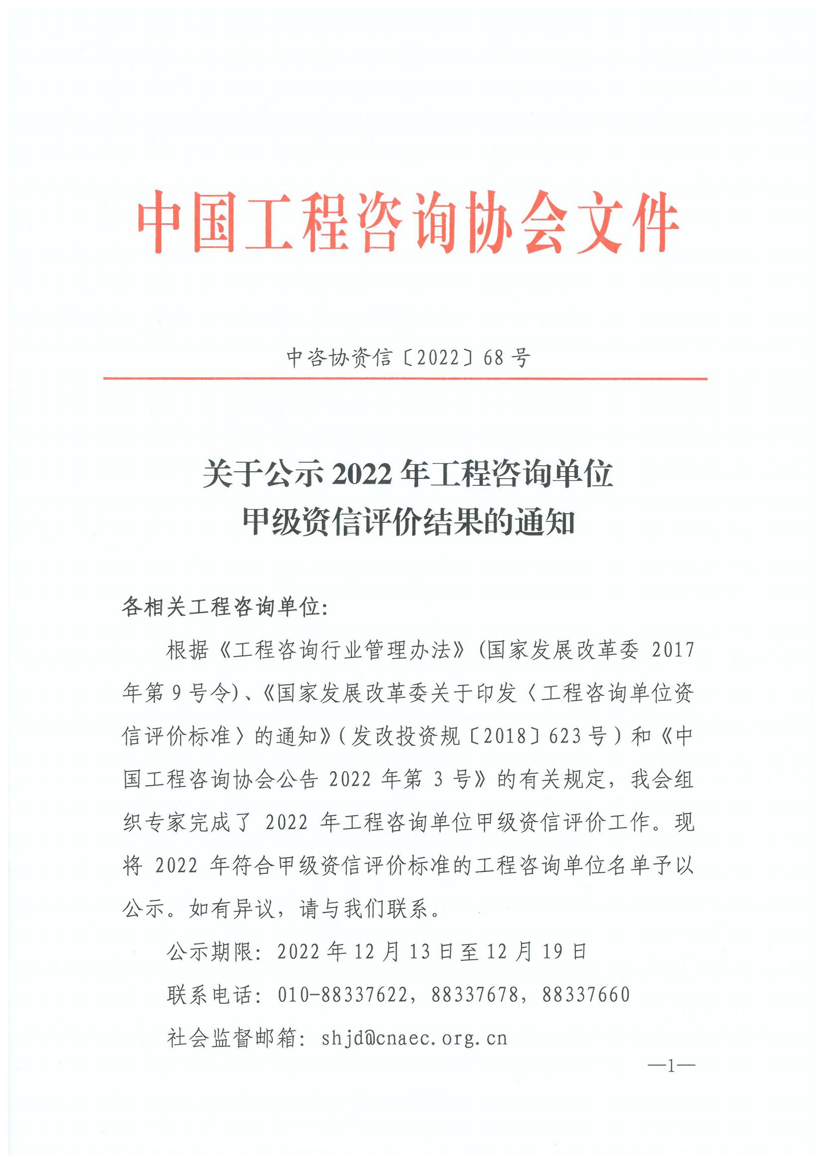 【概要描述】关于公示2022年工程咨询单位甲级资信评价结果的通知