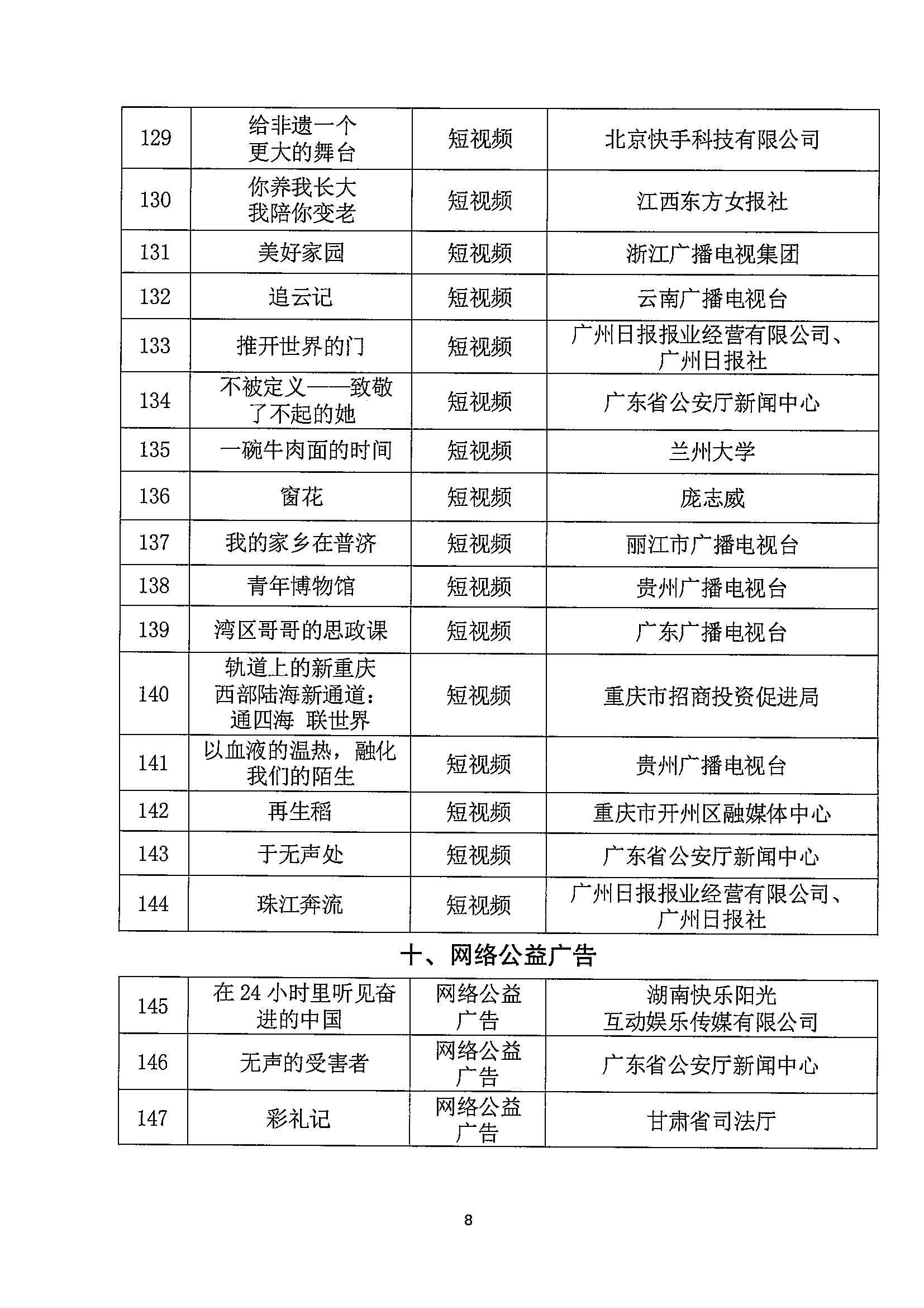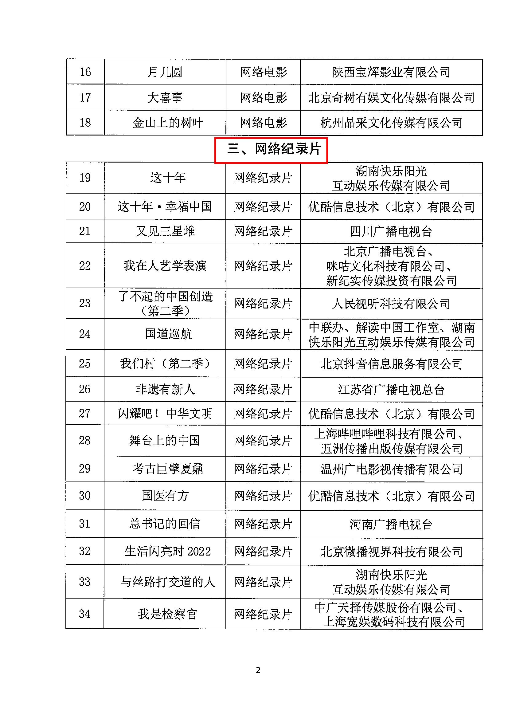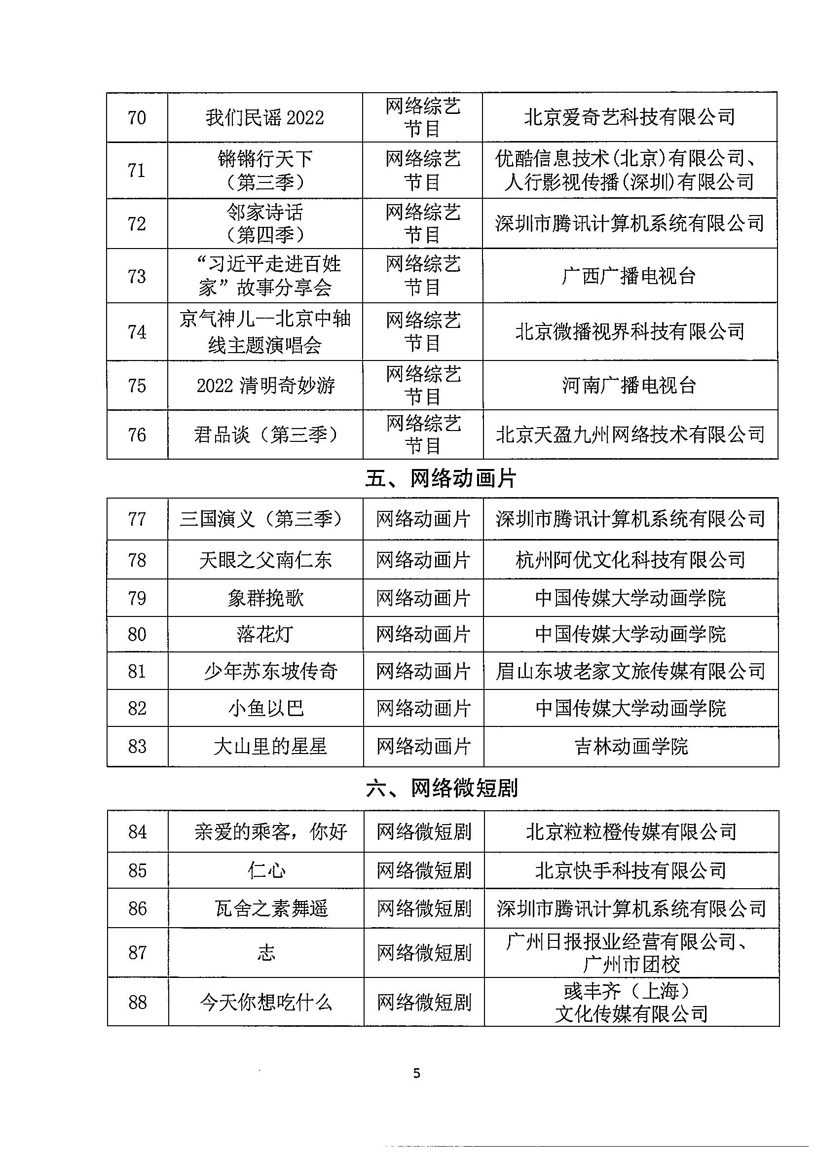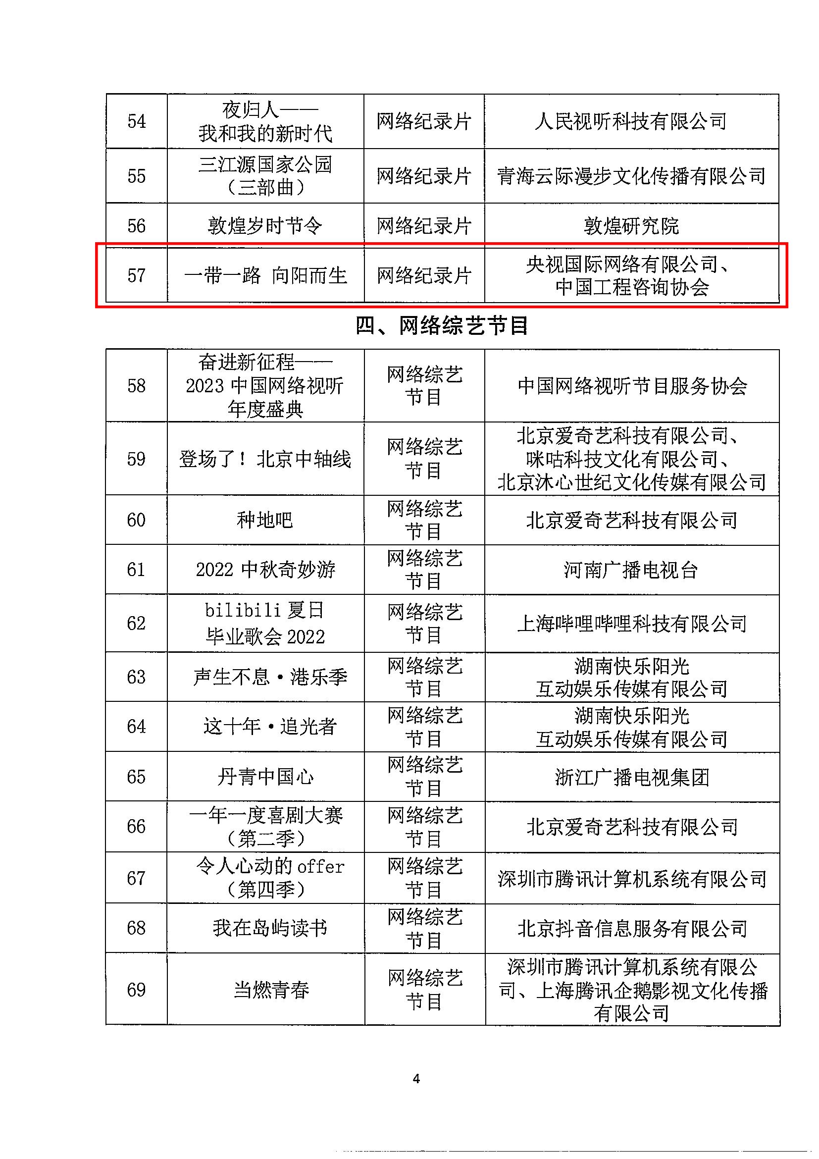 国家广播电视总局办公厅关于公布2023年“弘扬社会主义核心价值观 共筑中国梦”主题原创网络视听节目推选结果暨组织2023年“中国梦 新征程”原创优秀网络视听节目展播活动的通知:http://www.nrta.gov.cn/art/2023/8/22/art_113_65243.html
