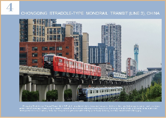 重庆市3号线跨座式单轨交通工程是重庆市轨道交通网络中一条南北走向的重要骨干线路,是世界上唯一的成功实现在同一条单轨线路高架、地下、过江、穿山、换乘等多种条件下,高差达100m的工程建设。线路全长约56.4km,设39座车站,跨越嘉陵江、长江、渝中半岛,是世界跨座式单轨交通历史上单线运营里程最长(56.4km)、客流强度最大(高峰102万/日)、列车编组最大(8节)、行车间隔最短(2分41秒)的工程实践。是解决重庆850万市民越江出行、高效节能、绿色环保的重要载体,为重庆3000年历史、文化和经济的可持续发展注入新的活力。