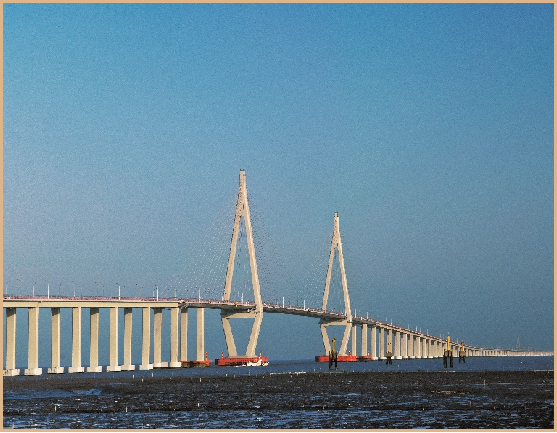 杭州湾跨海大桥全长36千米,是目前世界上最长的跨海大桥,是中国“五纵七横”国道主干线和国家高速公路沈(阳)海(口)高速公路跨越杭州湾的特大型桥梁,大桥的建成缩短了宁波至上海间的陆路距离100多千米,对完善国道和省道网络具有重大意义。