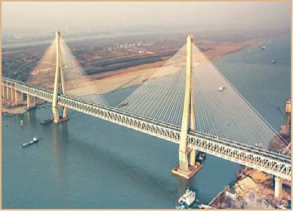 武汉天兴洲公铁两用长江大桥位于湖北省武汉市长江天兴洲河段,是国家干线铁路、京广高速铁路、武汉三环快速路的共用过江通道,是武汉市整体规划及武汉铁路枢纽总体规划中的特大桥梁工程,是中国高速铁路首座跨越长江的桥梁。