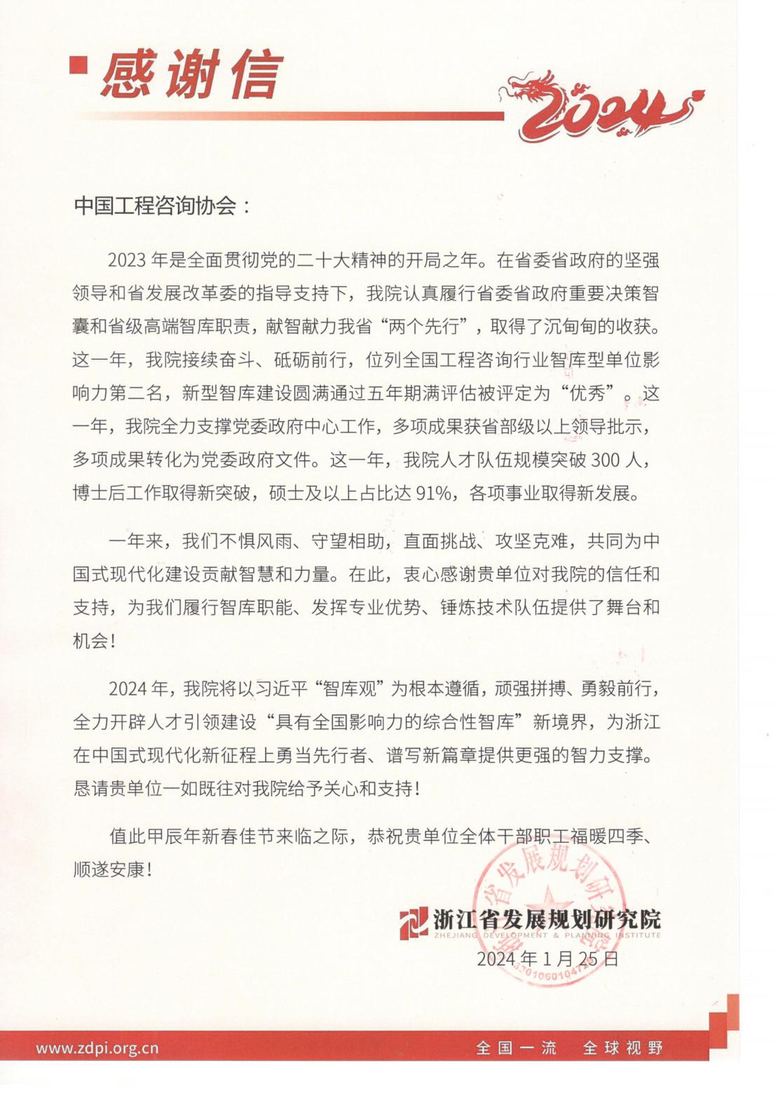 浙江省发展规划研究院感谢信