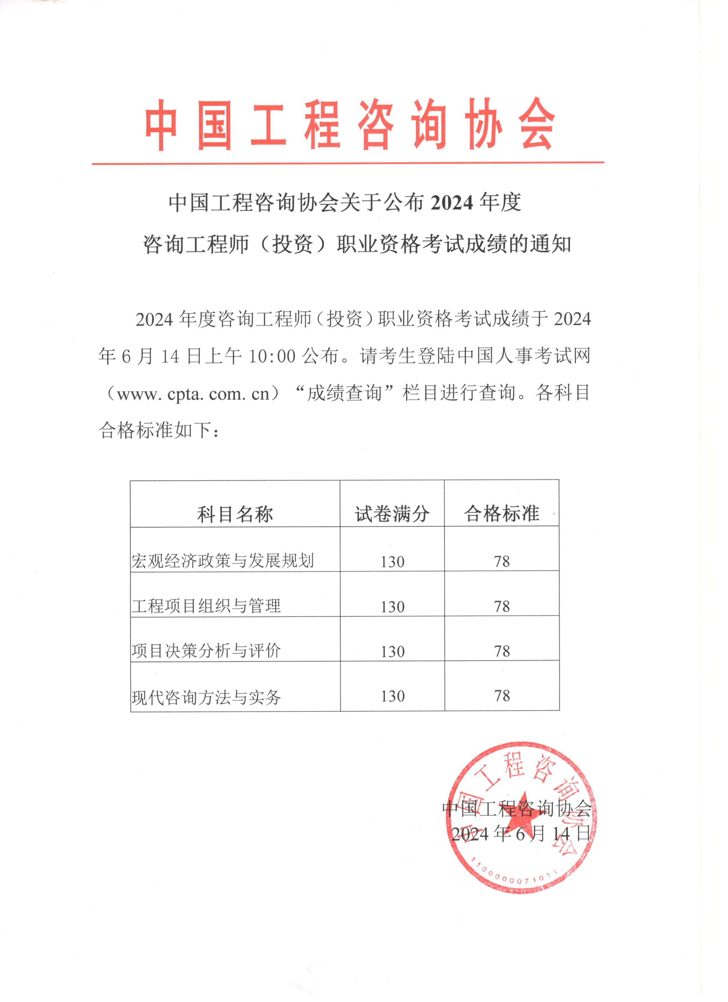 星空(中国)关于公布2024年度咨询工程师(投资)职业资格考试成绩的通知