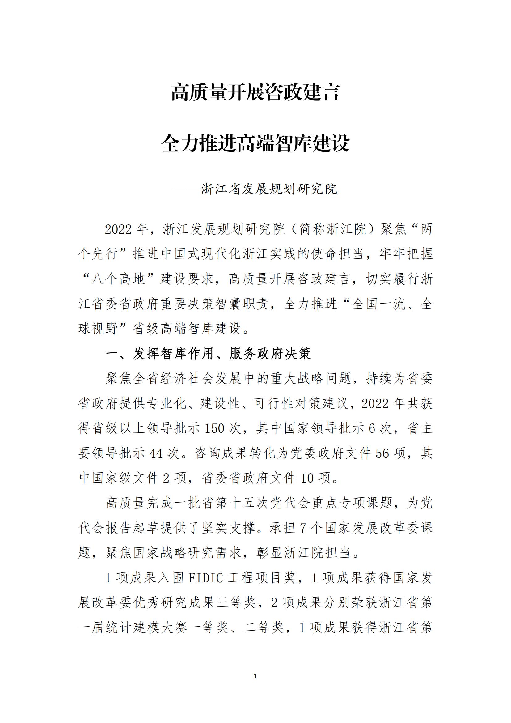 高质量开展咨政建言 全力推进高端智库建设 ——浙江省发展规划研究院<span class="l_time">2023-5-11</span>