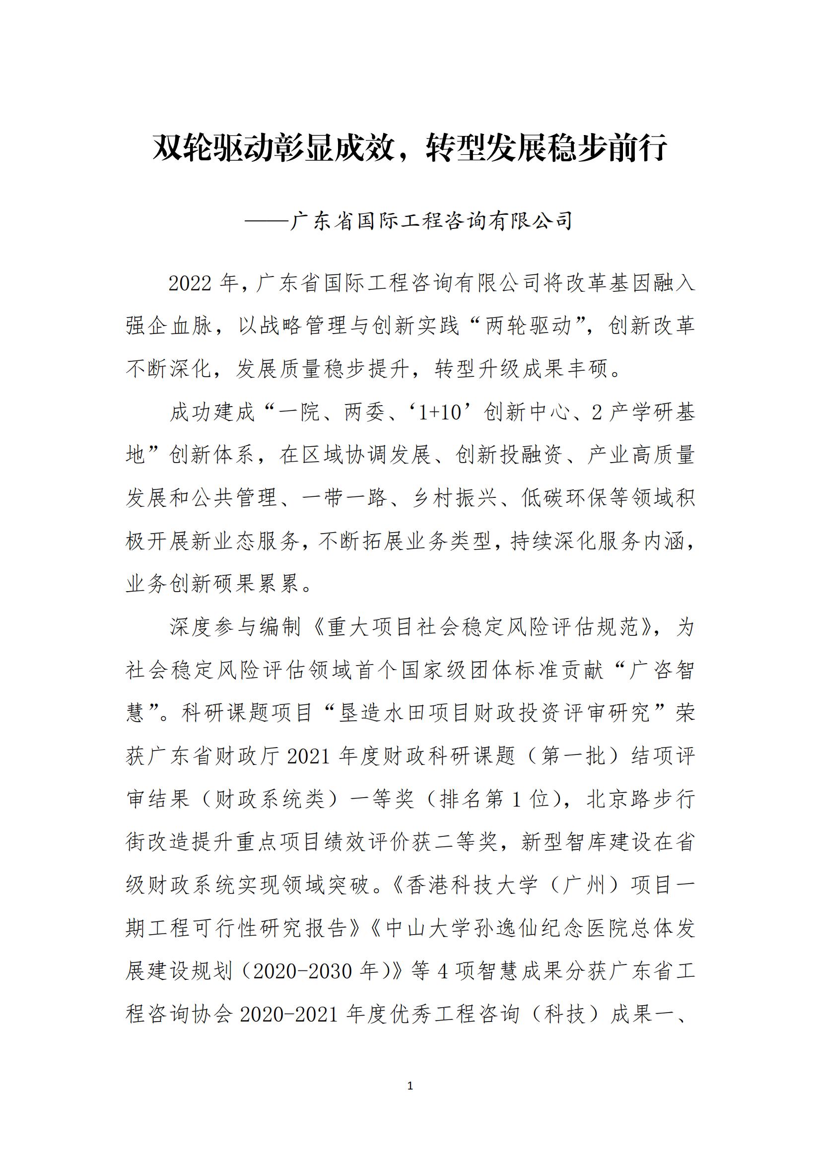双轮驱动彰显成效,转型发展稳步前行 ——广东省国际工程咨询有限公司<span class="l_time">2023-5-11</span>