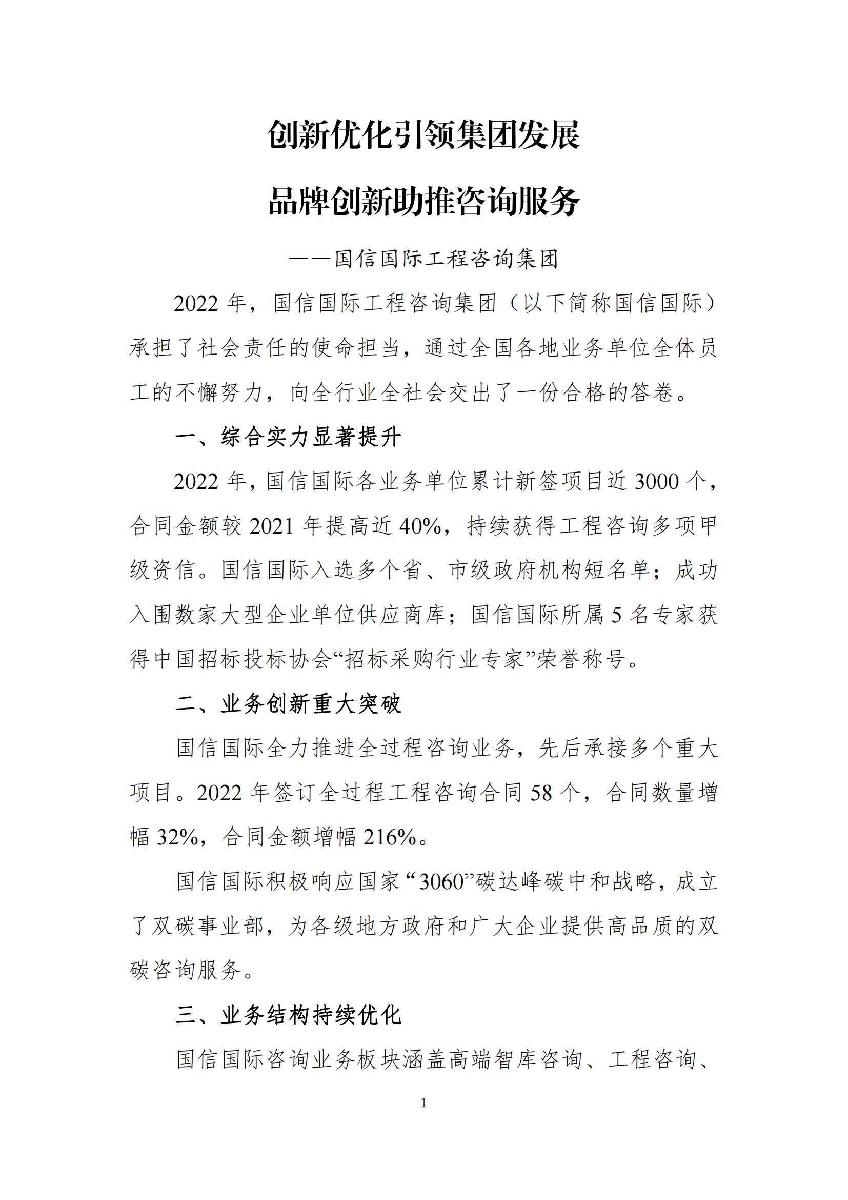 创新优化引领集团发展 品牌创新助推咨询服务 ——国信国际工程咨询集团2023-6-01