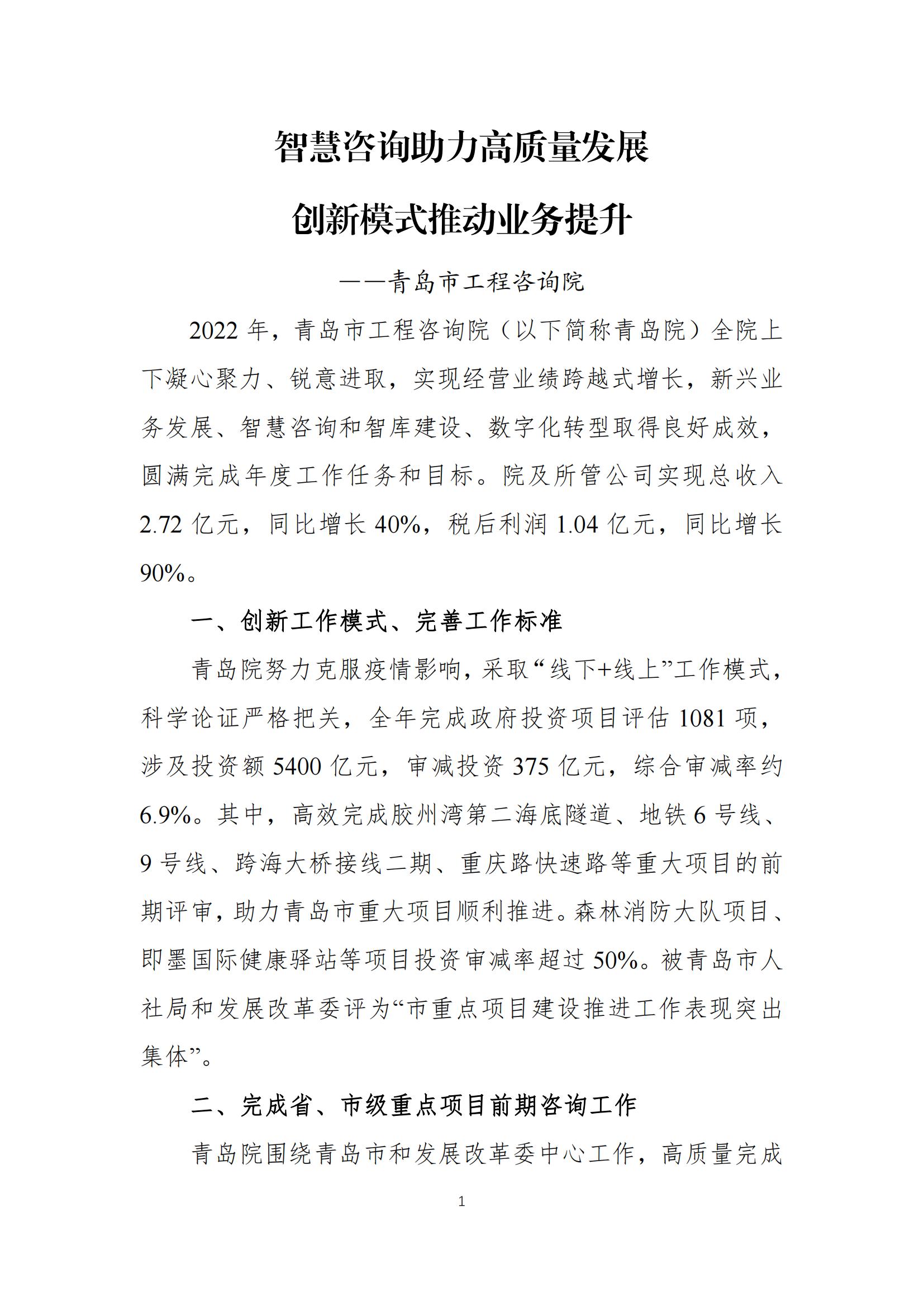 智慧咨询助力高质量发展 创新模式推动业务提升 ——青岛市工程咨询院2023-6-01