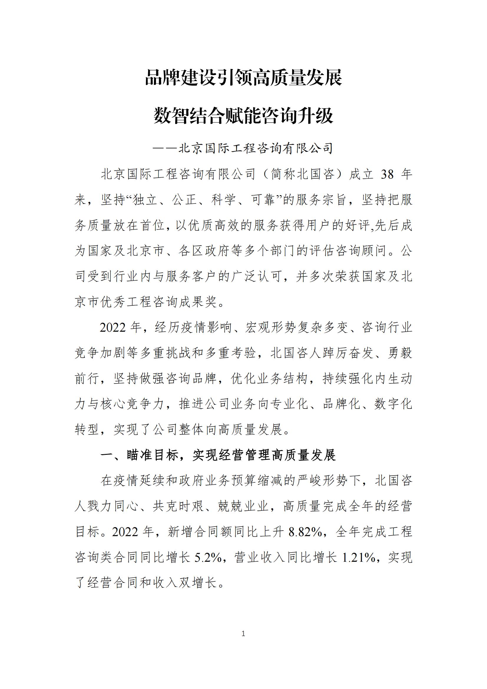 品牌建设引领高质量发展 数智结合赋能咨询升级 ——北京国际工程咨询有限公司2023-6-01