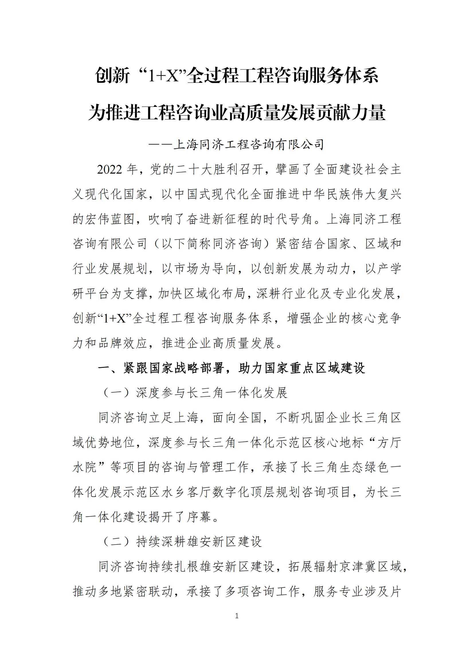 创新“1+X”全过程工程咨询服务体系 为推进工程咨询业高质量发展贡献力量——上海同济工程咨询有限公司2023-7-05