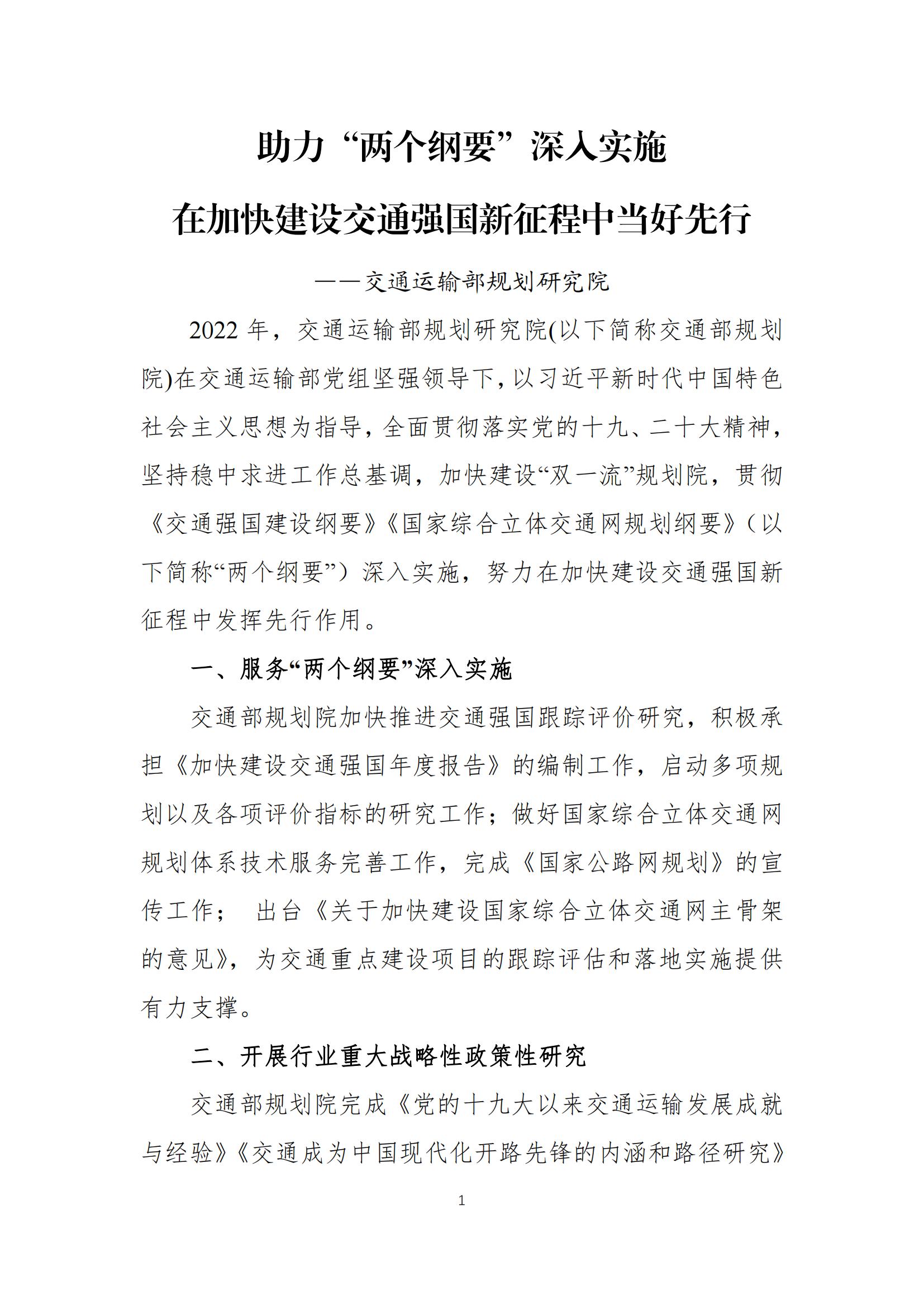 助力“两个纲要”深入实施 在加快建设交通强国新征程中当好先行——交通运输部规划研究院2023-7-05