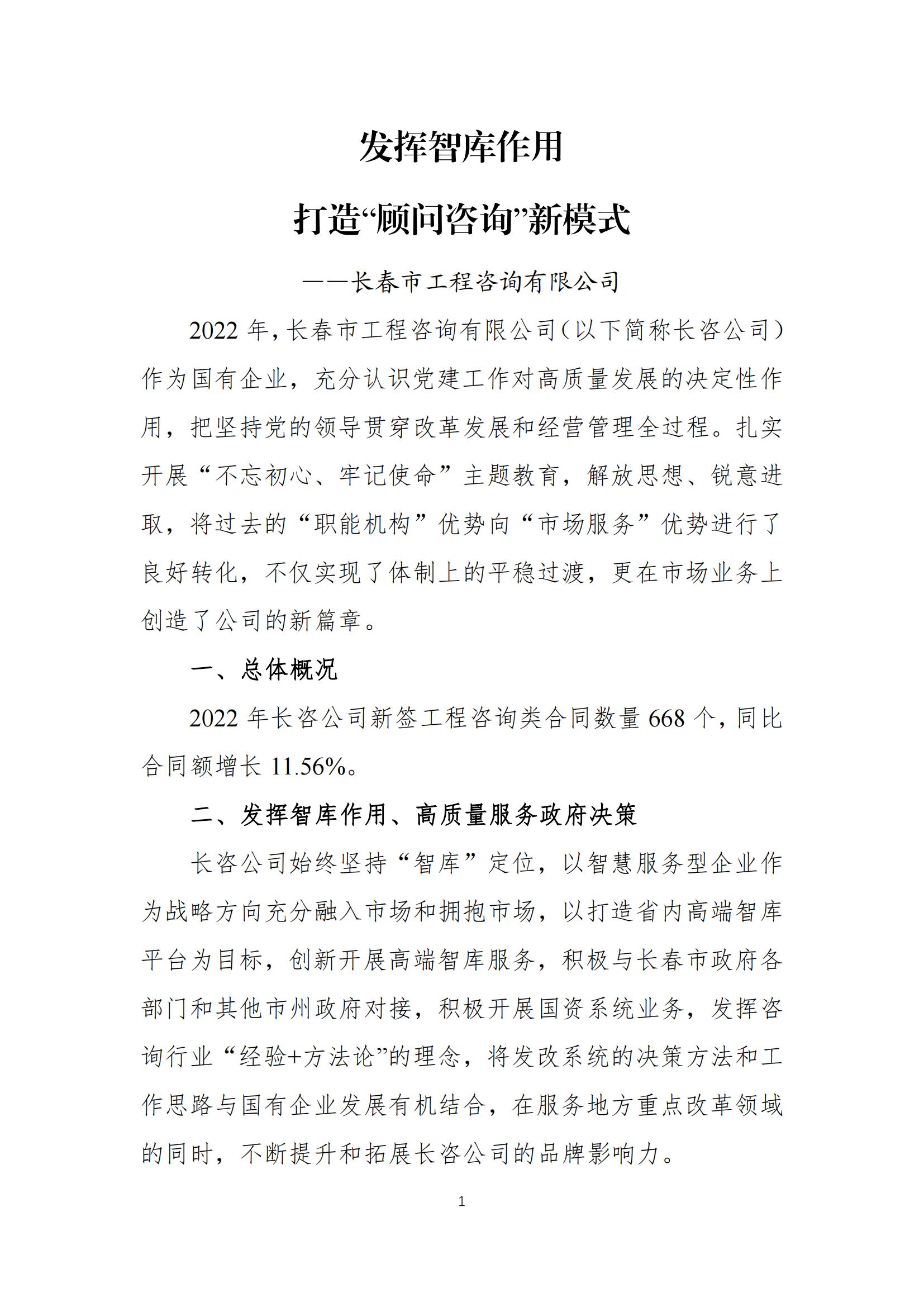 发挥智库作用 打造“顾问咨询”新模式——长春市工程咨询有限公司2023-7-05