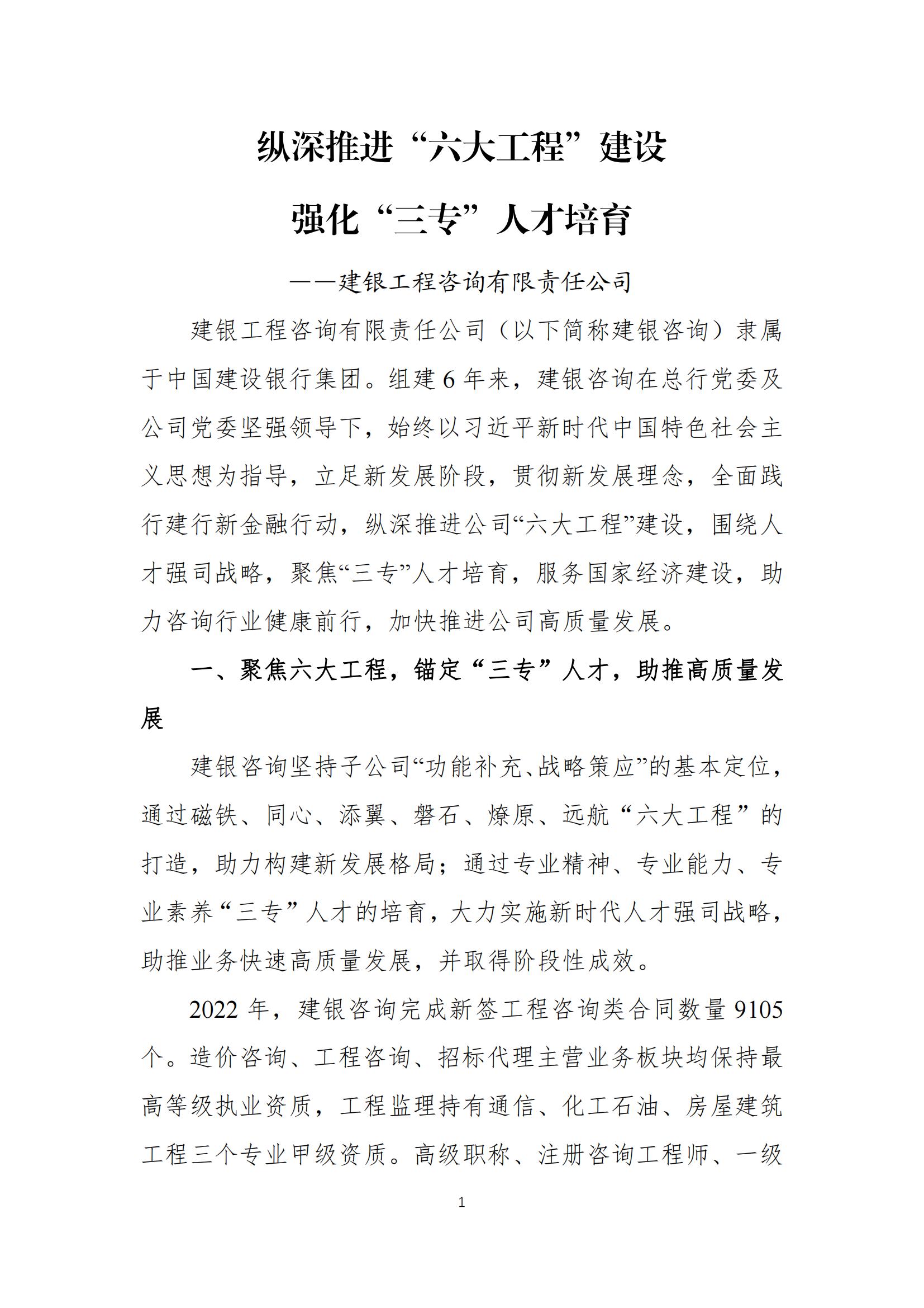 纵深推进“六大工程”建设 强化“三专”人才培育——建银工程咨询有限责任公司<span class="l_time">2023-8-02</span>