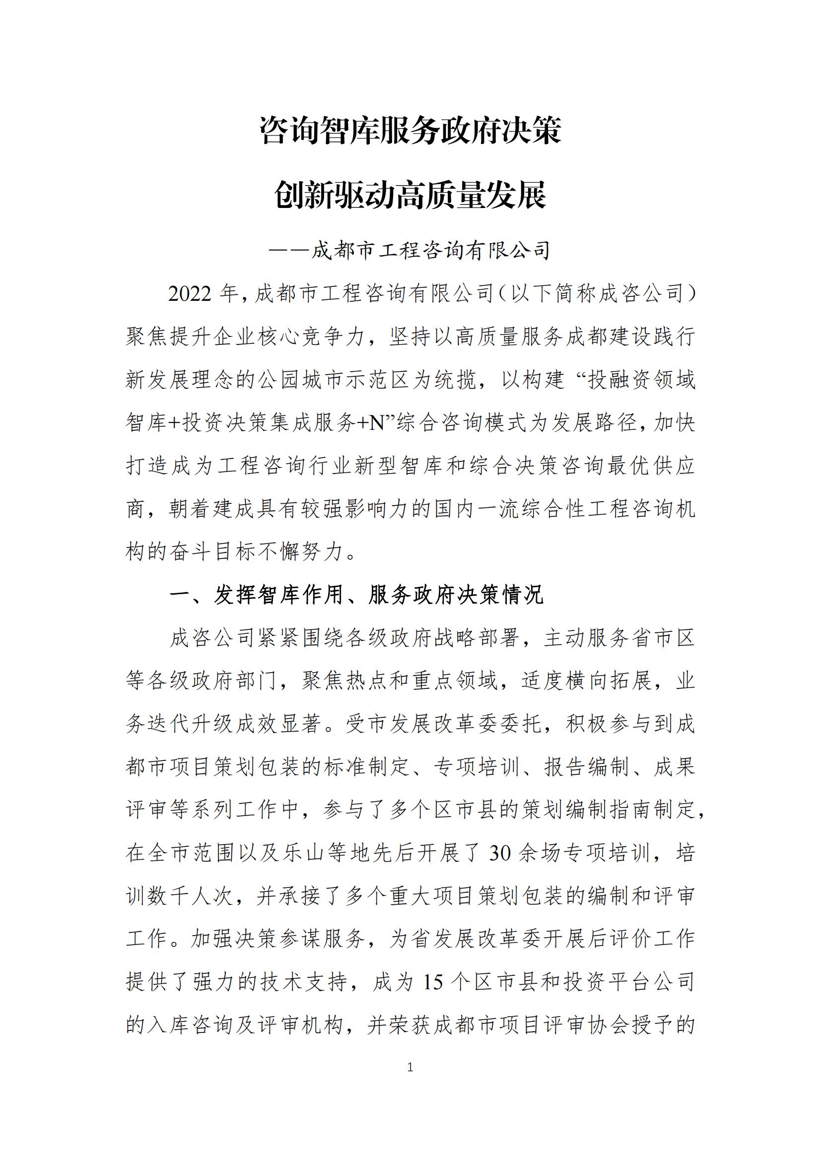 咨询智库服务政府决策 创新驱动高质量发展——成都市工程咨询有限公司<span class="l_time">2023-8-02</span>