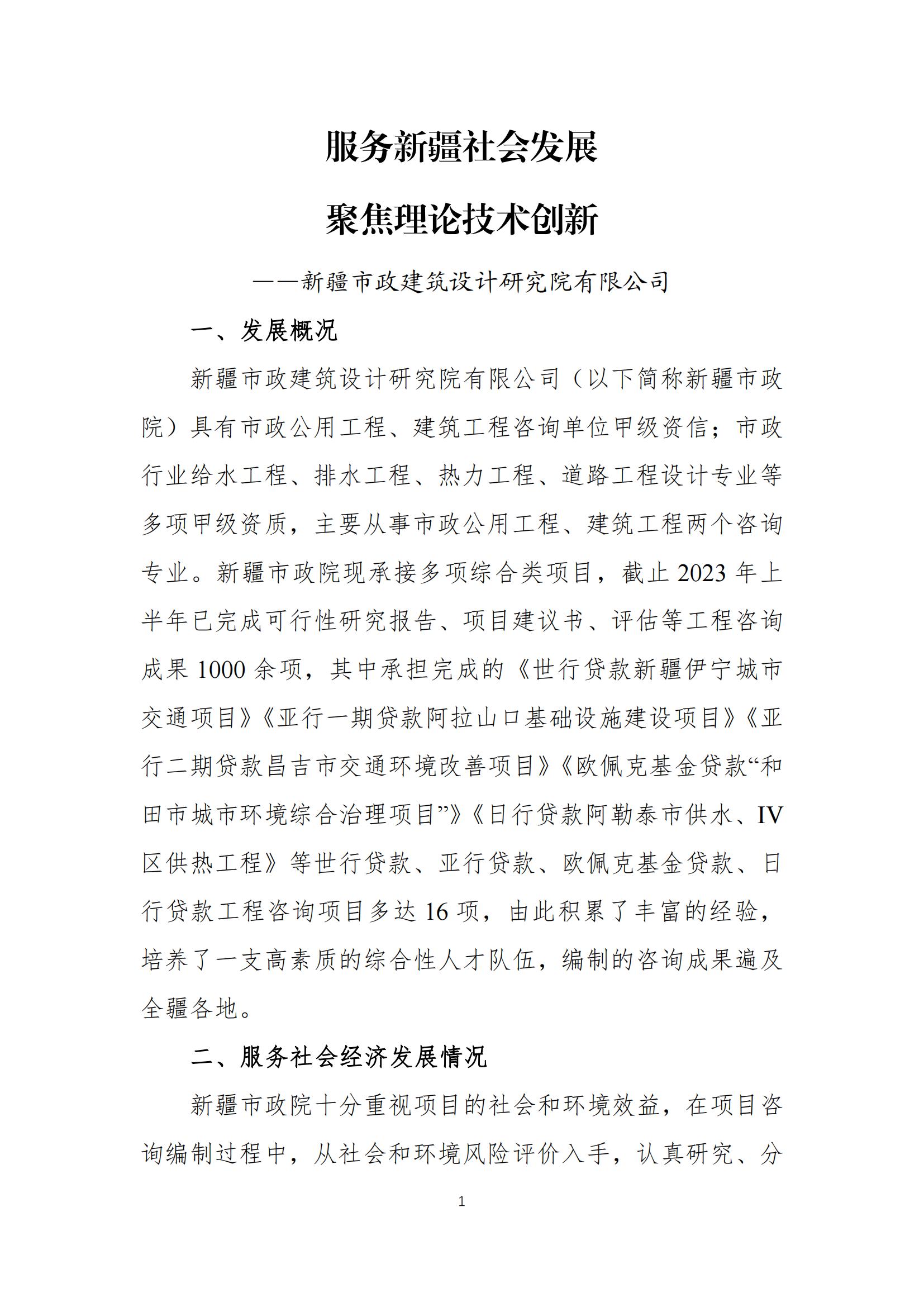 服务新疆社会发展 聚焦理论技术创新——新疆市政建筑设计研究院有限公司2023-9-01