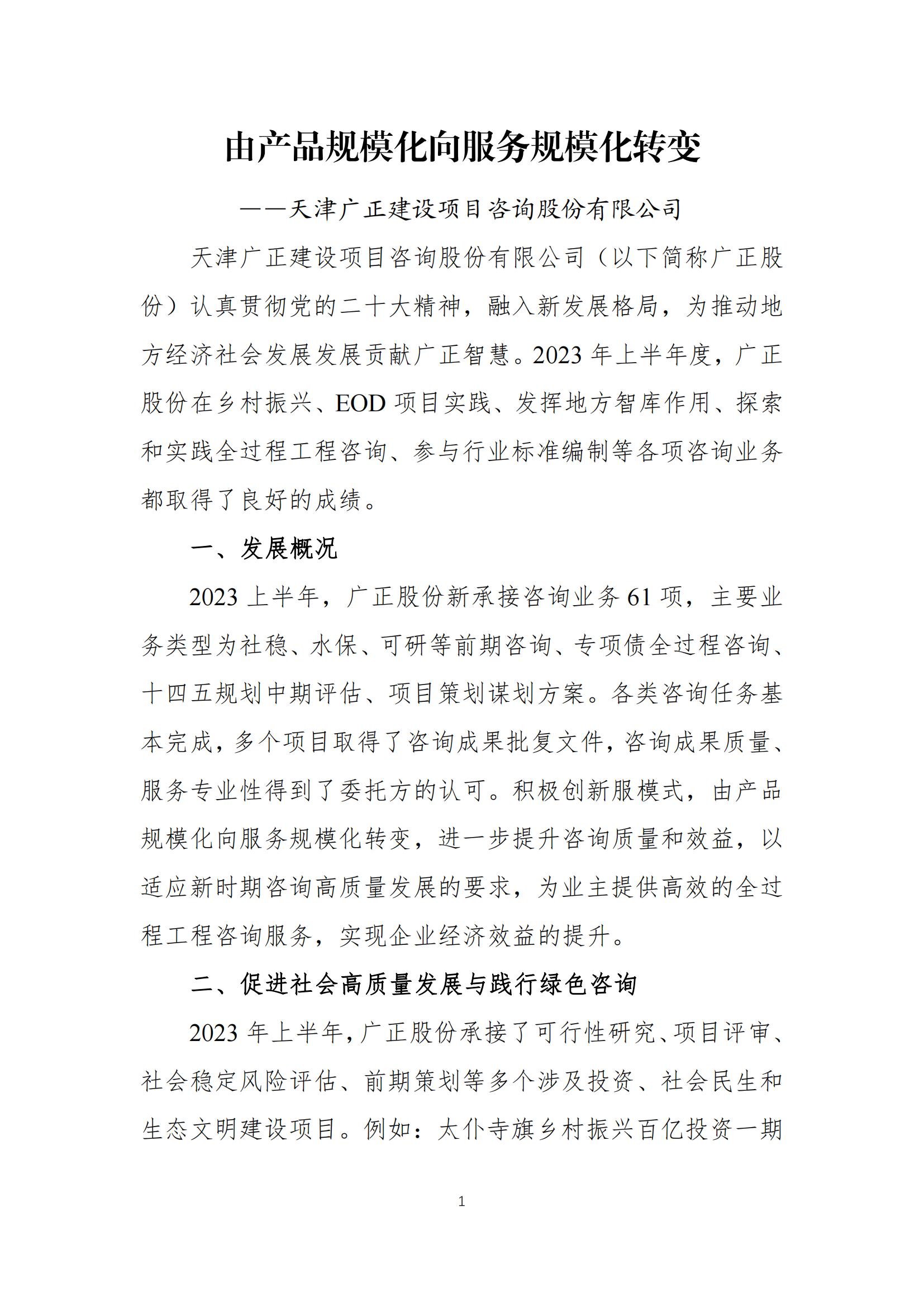 由产品规模化向服务规模化转变——天津广正建设项目咨询股份有限公司<span class="l_time">2023-9-01</span>