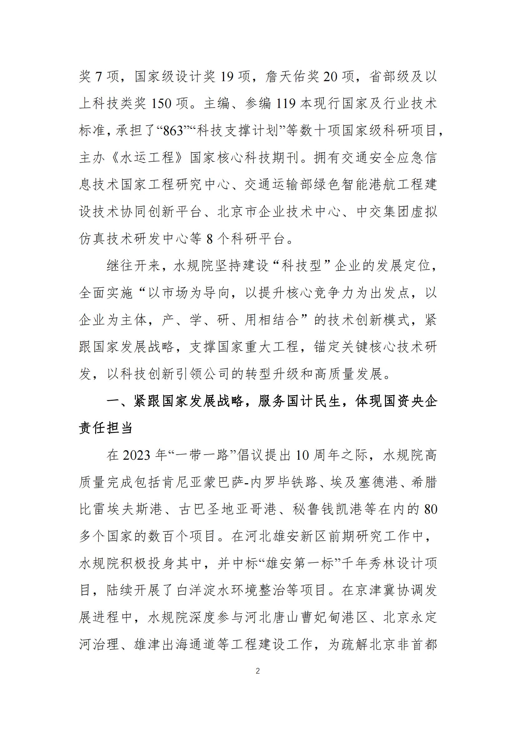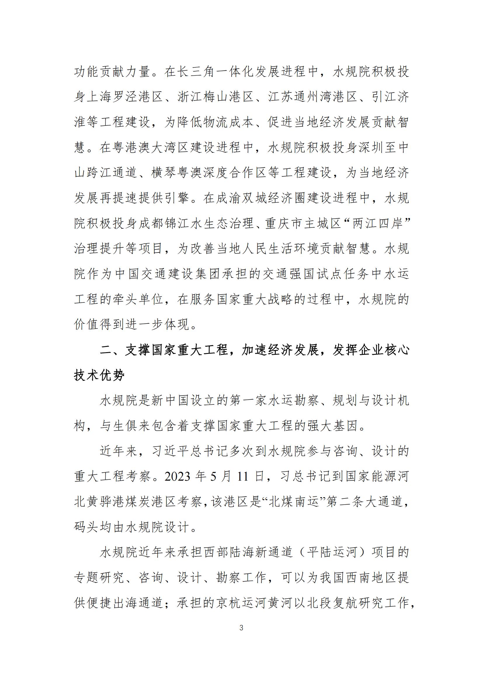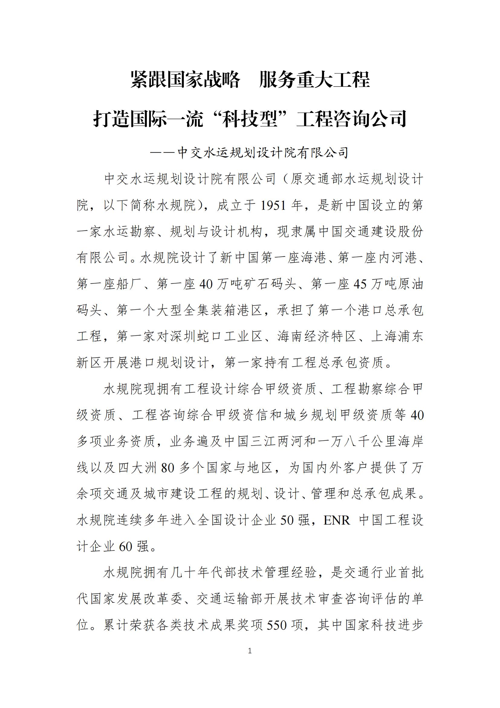 紧跟国家战略 服务重大工程 打造国际一流“科技型”工程咨询公司——中交水运规划设计院有限公司2023-9-01