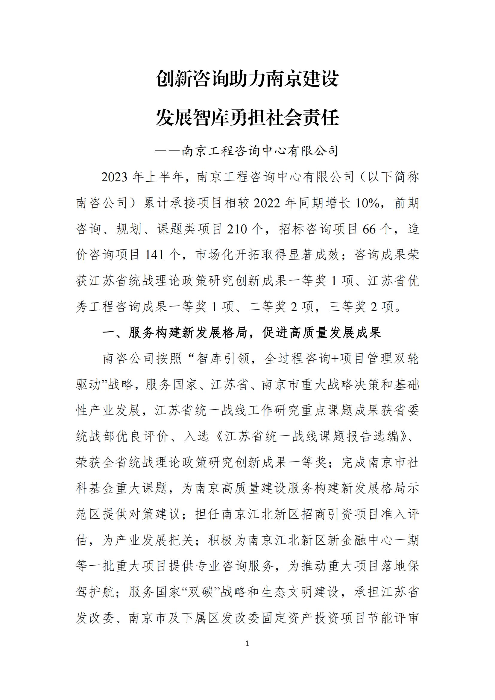 创新咨询助力南京建设 发展智库勇担社会责任——南京工程咨询中心有限公司2023-9-27