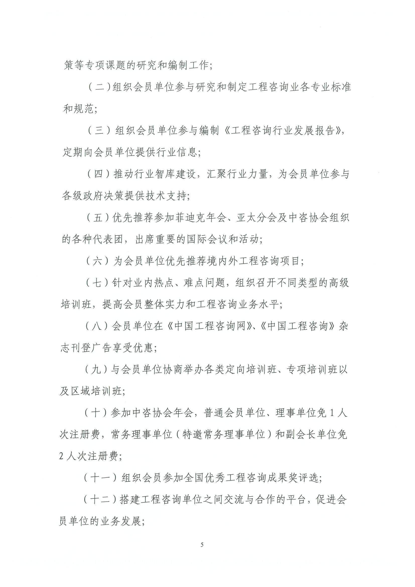 5.组织会员单位参与研究和制定工程咨询业各专业标准和规范;